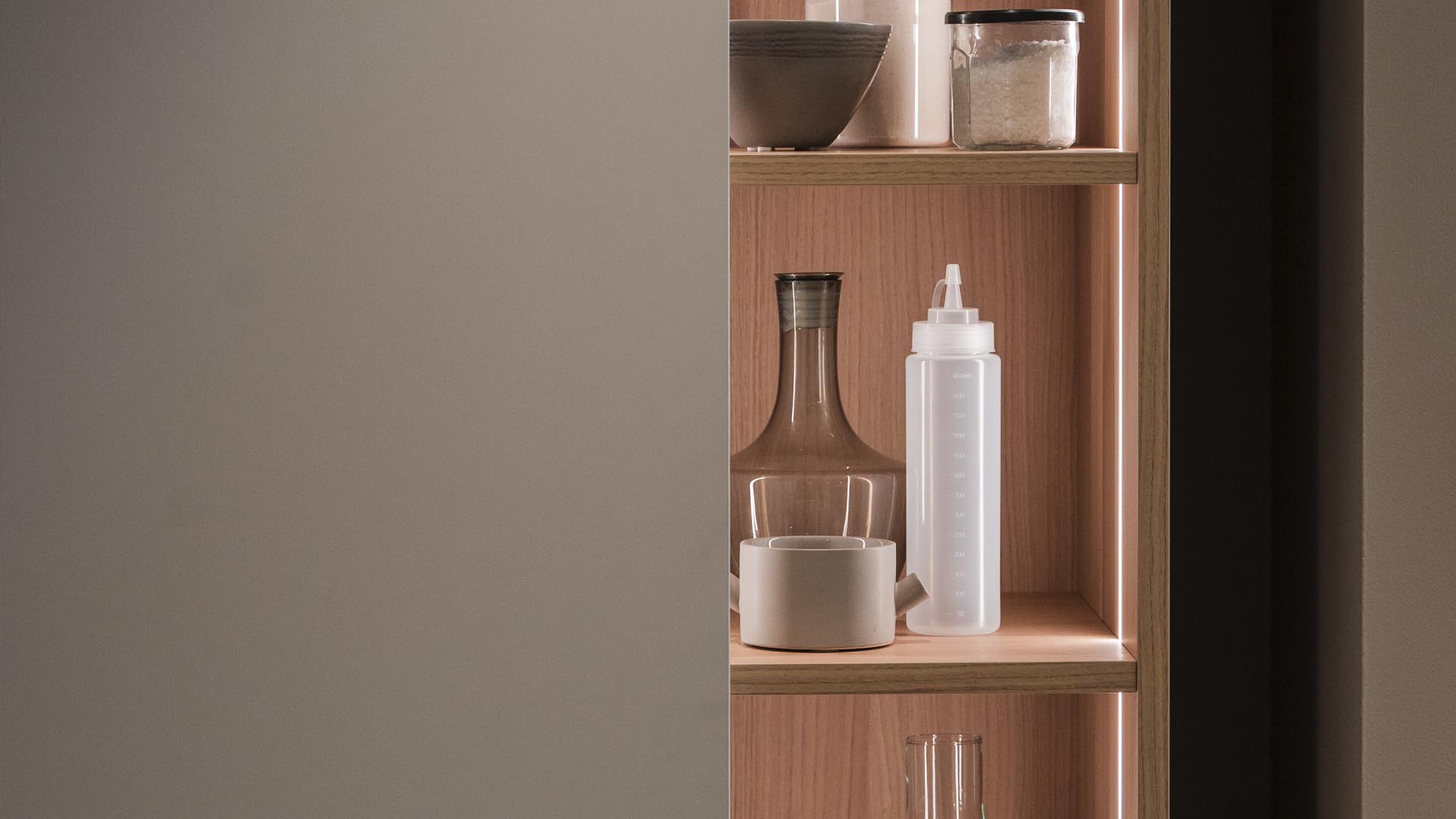L’isola della collezione Anice si distingue come fulcro della cucina contemporanea, dove estetica e funzionalità trovano un equilibrio naturale. Il piano snack scorrevole diventa l’elemento chiave, capace di trasformare con un gesto lo spazio, passando da superficie di preparazione a tavolo conviviale, mantenendo sempre un design essenziale e raffinato.