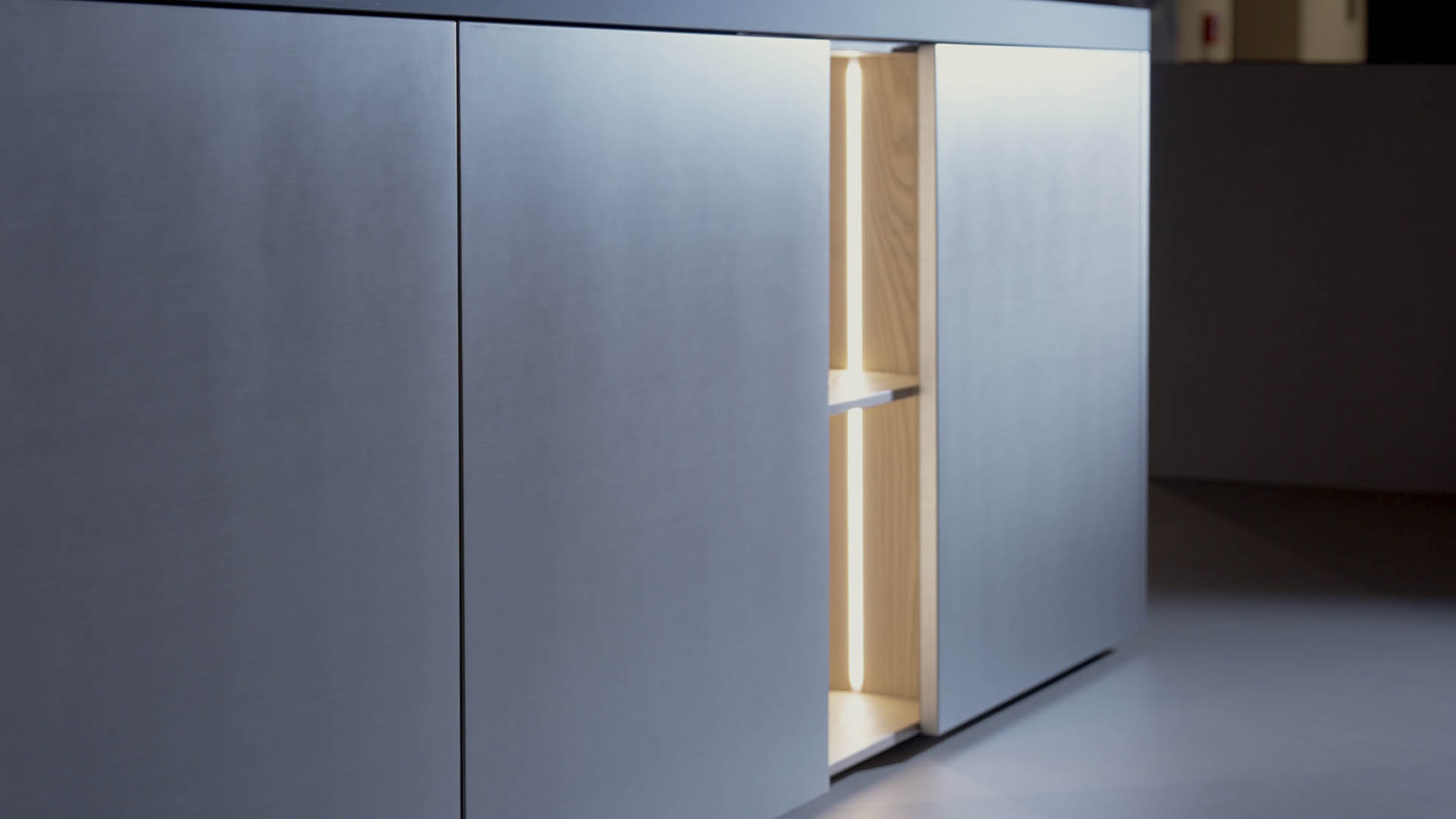 L’eccellenza artigiana di Valdesign si esprime nella continua ricerca materica che definisce ogni progetto cucina. Tra le finiture speciali, il Laccato effetto metallo Tonic Satinato interpreta la superficie come elemento architettonico, capace di valorizzare volumi, geometrie e proporzioni. Non è un semplice rivestimento, ma una superficie progettuale che dialoga con la luce e restituisce profondità agli spazi.